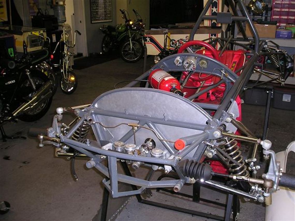 Complete car that needs to be assembled. Fresh Wenz engine (Dyno time only), fresh rebuild on Hewland, new bodywork (original bodywork included), new windsceen, heim joints, radiator,seat, steering wheel, gauges, fire system, ATL Fuel Cell, grade 8 hardware. Recently re-plated entire suspension, pedals, halfshafts, engine mounts, rollbar support and assorted other bits. Rebuilt shocks, calipers, trunions, master and salve cylinders. New bearings in uprights and front spindles. Every part on this car is either new or rebuilt to finest original standards. Just needs to be assembled.