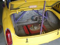 This great handling race ready car has in addition to the race items listed below: very well built roll cage attached to frame only--not attached to sheet metal and with side bars across doors, aluminium backplate high torque starter and a transponder. The roll bar is tall because driver is 6 ft. 2 in. and mechanic is 6 ft. 10 in. Race seat is adjustable fore and aft.
