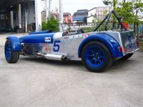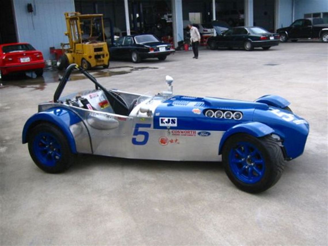 1987 Caterham 7 W/ de Deon rear suspension. Front suspension Has been upgraded to double wishbone. Front and rear shocks Koni’s series 2812 W/ Eibch springs. Engine Dry Sump 1700 BDC W/ Lucas Mark IV fuel injection 235hp at 8500 red lines at 9800. I just pulled the engine an replaced the valve seals and checked all brg. and pistons. Has a new timing belt. Ignition, Mallory HyFire Transmission is the single rail type W/ integral bell housing and Straight cut racing gears. Clutch is twin disc W/ center hydraulic release new disks when engine was out. Super Starter and new ring gear. Differential, limited slip with 4.6 ratio Wheels are Magnesium 14X7 Gages, Autometer oil filed Set is carbon fiber On a 2.1 klm course 6 curves with two 170 deg. hairpins and a 400 meter back straight 1 was turning it in 1min.3sec I weigh 200 lb.