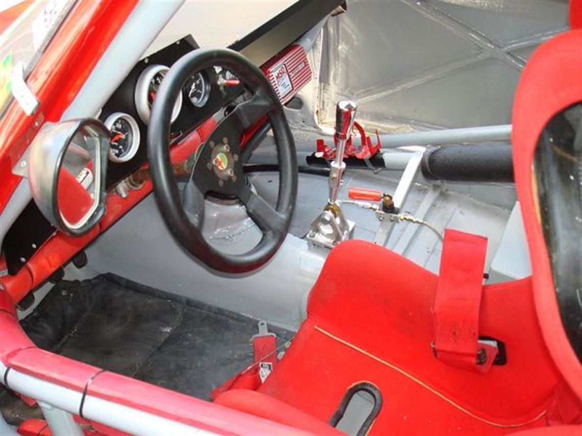 1967 Alfa Romeo GT "Stepnose" with completely fresh professionaly built motor (balance between Sprint and Eduros) 2 liter Twin cam motor at approximately 175+hp. 11:1 pistons, Big Valves, Aluminum Flywheel, Tilton Pressure Plate and disk, Ported head, Spruell Race Headers, newly rebuilt Weber 45 DCOE carbs, Mike Besic "Super Close Ratio" custom 5 speed gearbox, MSD ignition, hanging pedals, Ward & Dean style heavy front sway bar and springs, beautiful Panasport Racing wheels as well as 2nd set of new "Alfaholics" GTA style wheels both with Proxes RA-1 tires. Car refurbished in 2010 with all bodywork and new rear flares installed, brand new paint, complete replacement of all hydrolics lines and master and slave cylinders, all hoses, brand new radiator, all new suspension and steering joints. New Pannard bar, Spruell motor mounts, "bullet proof" flex joint with cover> Super comfortable short shift aluminum shifter, rebuilt Ate brakes and new Performance Friction race pads and slotted rotors. Car is perfectly balanced and neutral, Fiberglass doors, hood and trunk, 1 year old Optima battery. Fast and reliable car. 3rd in class (7th overall) after starting 28th in 2010 Walter Mitty race in first race of season for this car. AMB Transponder, Poly Bushes throughout, Lexan windows throughout. Spare Trans, motor, box of Race specific parts (electrical, weber, plex ignition, etc). The Alfa is perfect to be at the front of class and top 10 Group 3 for 2011 as HSR and SVRA (group 8) log books comes with it. Moved up to Lola and prepping it for 2011 now. Price reduced and ready for immediate inspection and offers considered. See Grass Roots Motorsport SMALL BORE ENDURO POSTER ---- this is THAT Alfa. Added: March 28: Recently ran at Palm Beach raceway (Moroso) and did quite well winning class, plus 2nd in International Challenge behind one really quick Lotus, 4th in Small Bore Enduro overall. Already entered in The Mitty, but willing to sell to another to attend April 28-May 1. The Mitty will also feature the GRM Small Bore Enduro and a special extra extra race for the SCCA 2.5 cars like the Alfa.