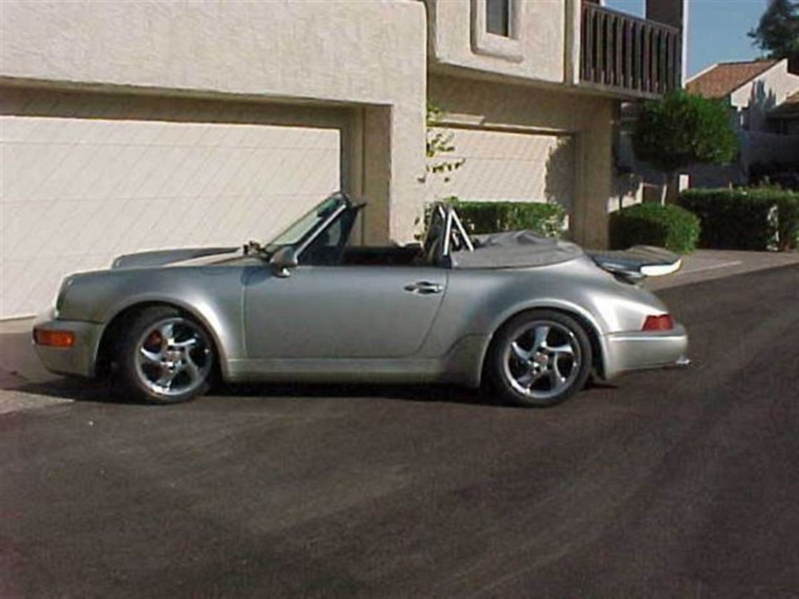 A truly special one-of-a kind turbo conversion by Patrick Motorsports. Original 83 SC cabriolet meticulously restored and upgraded. Bodywork updated to '92 with steel flares tig-welded and metal finished , aero mirrors and new paint to original "Zurmat Silver" factory color. 3.3 litre turbo motor upgraded with carrera big port heads and 993 cams/camtowers & hydrolic lifters. All "raceware" hardware on engine build. G-50 trans w/ g-50/50 5th for highway cruising. All new suspension/tortion bars/big brakes/front oil cooler. Programmable crank-fire ignition, B&B stainless exhaust. New interior with black leather sport seats, new carpet & custom center console. Roll bar & 5 point harness. This car is a must for lovers of the early turbos. Lots of HP avaible. Currently tuned down as a street machine @275bhp, and easily passed Az emissions. Approx. 7,500 miles since total re-build. Not raced since re-build.
