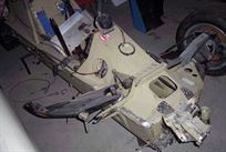 This is a DGB gearbox from a March 847. Car was crashed in RF corner and engine is gone. Gearbox looks to be in good shape and complete. Has CV joint axles and out-board brakes. Tub, Chassis #847-01 and engine also available. Ex Crawford, Cobb
