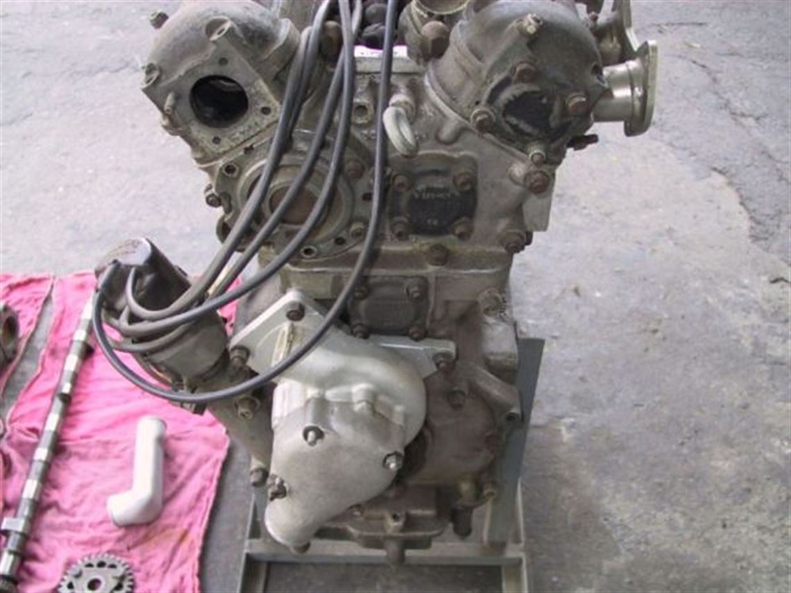 Coventry Climax FPF 2.0L Mark 2 cross bolted mains. In good condition. Includes 45DCOE set up, intake and water manifolds. Exhaust cam has been removed but is included. Been sitting since being removed from Brabham BT-8 sports racer. Needs rebuild.