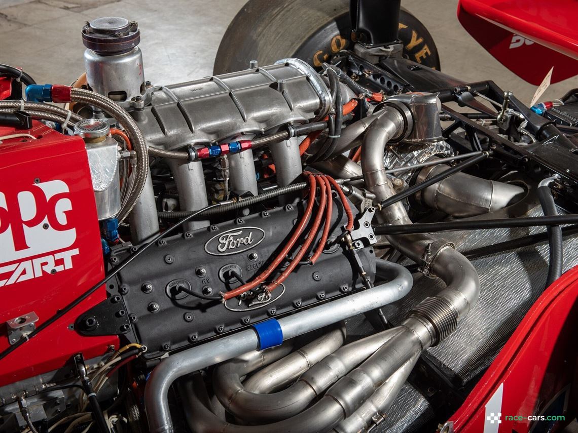 A Cosworth DFX turbocharged V-8 engine served as the heart of the racecar and was reported to produce approximately 700 horsepower with alcohol fuel. An example of this impressive engine is fitted to this chassis today.