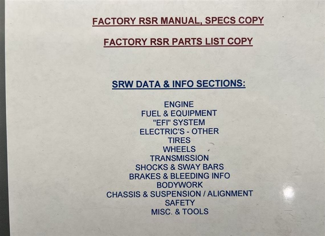 Immaculate 993 GT2 RSR / EVO. Chassis #WPOZZZ99ZTS398065. EVO PMNA FACTORY TUB#48055. Privately owned and club raced. Fully Documented with All PCA log books since new. All reciepts since new. Notebooks and pictures of 2000 - 2001 full rebuild with PMNA authorized Kelly Moss. Original BBS centers powdercoated w new drums. Full specs and spares list below. Tracked only at rennsport 2018 since engine and gearbox work completed.....described below. Additional pictures on request. Some of the engine photos are from the previous seller.